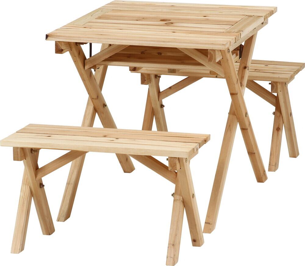 BBQテーブル&ベンチセットミニ コンロスペース付 NA