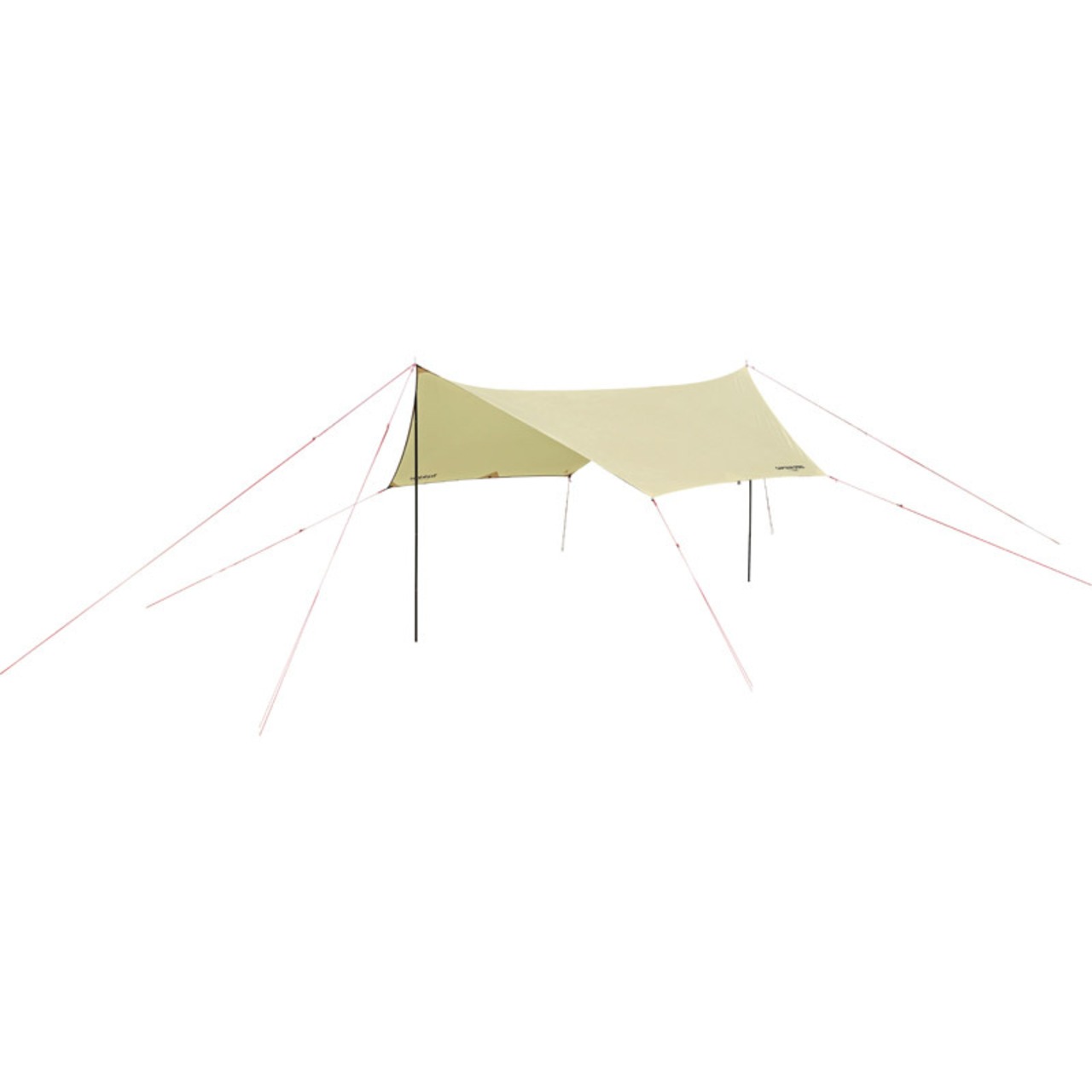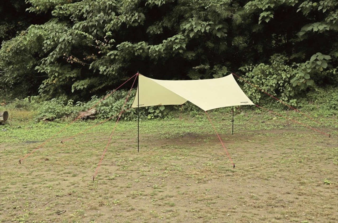 3~4人用に最適なスペースを確保できるコンパクトタープです。多彩なセッティングが可能な6角形型です。ループベルトと三角布で角コーナーを補強、引っ張り強度をアップしています。3~4人用