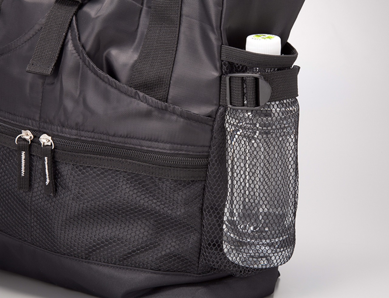 *サイドには、500mlのペットボトルを入れられるメッシュポケット付き。