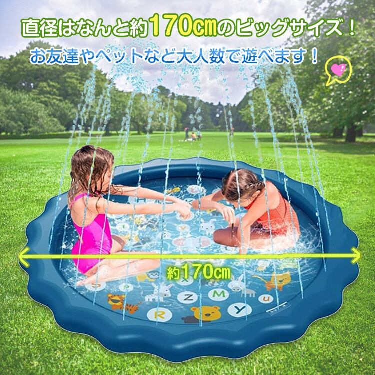 親子水遊び用 大型170cm ウォーターマット 子供用噴水プレイマット 防滑
