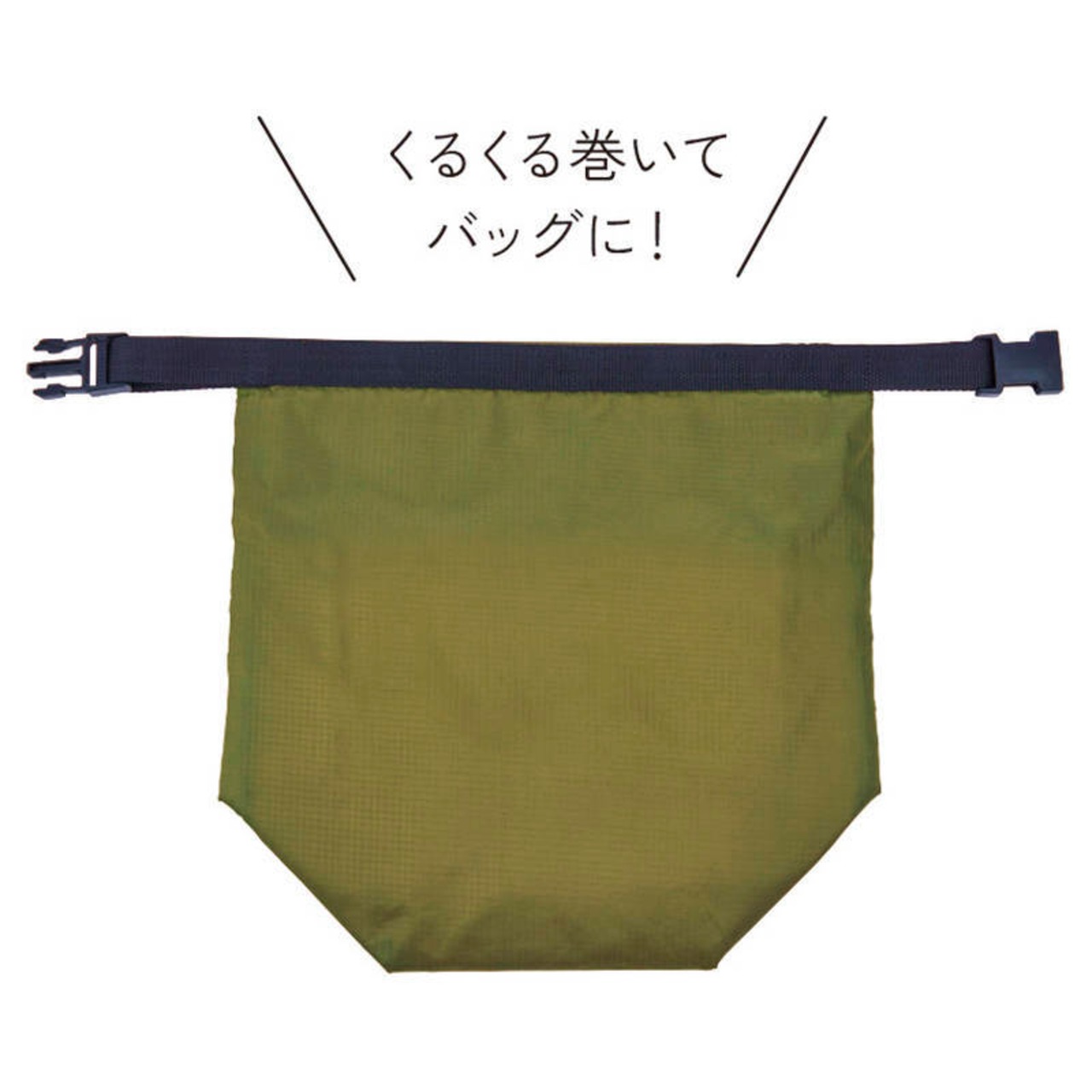 くるくる巻いて、カチッと留めるだけ!お弁当やペットボトルなど、中身に合わせて自由に高さ調節が可能。外生地はテントにも採用される、丈夫でしなやかな生地。雨や汚れを弾く撥水加工済。内生地は保冷温効果に優れたアルミ蒸着フィルム加工。