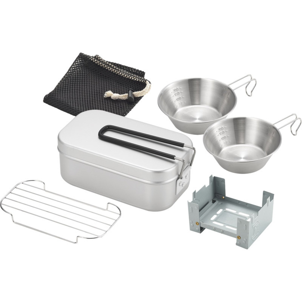 煮炊きができるアルミ鍋と様々な料理が楽しめる調理セット。炊く・茹でる・温める・蒸す調理が可能。