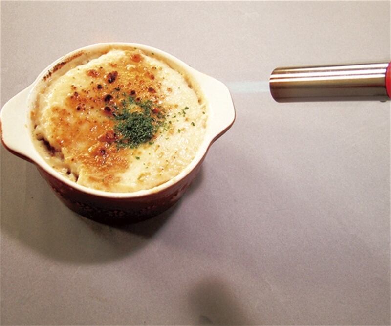 カセットボンベ式お料理用トーチバーナー。ケーキの焼き目仕上げ、脂ののった炙り寿司、グラタンのチーズを香ばしくなどのお料理に便利です。・簡単操作でワンタッチ点火、つまみの操作で火力操作可能。・ボンベの着脱が簡単なクイック方式。・連続燃焼時間:約2時間30分