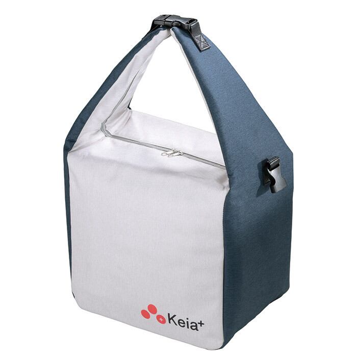 絶好の行楽シーズンに人気のキャンプにオススメの保冷温バッグです。キャンプ地に到着してからの、地元の食材買い出しは楽しみの一つでもあります。そんな時に、最適なサイズと使い勝手を考えたバッグに作り上げました。食材が入れやすい角型形状で、ファスナーを全開できるので、入れやすく取り出しやすくなってます。両先端に付いてあるバックルを止めて手提げや肩掛けになります。バックルをサイド側の片側バックルにロックするとバッグ自体が角型になり、内側にあるショルダーベルトを使ってリュック形状としても変形できます。バッグの底部が安定しているので、自動車の助手席などに置いても不安定になりません。バッグ内側には、保冷剤などが入れることができるメッシュポケットも付いてます。夏は保冷バッグとして、冬は保温バッグとして使用可能です。生地表面には、撥水加工が施されてますので、突然の雨にも対応します。自転車のバスケットにも入るサイズになってます。