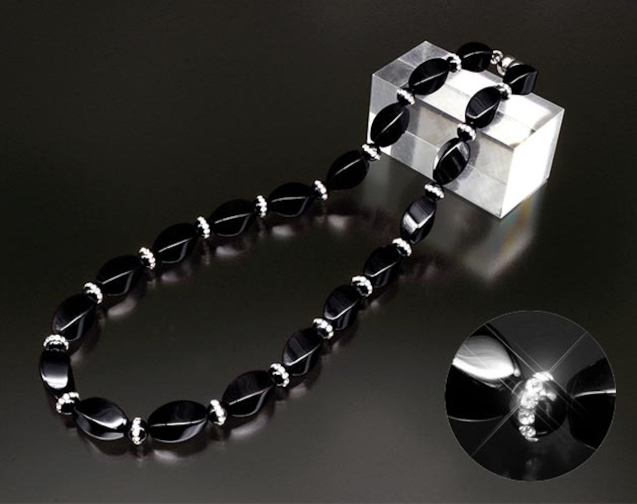 オニキス:16x8mm×20個、6mm珠(ラインストーン付き)×19個
