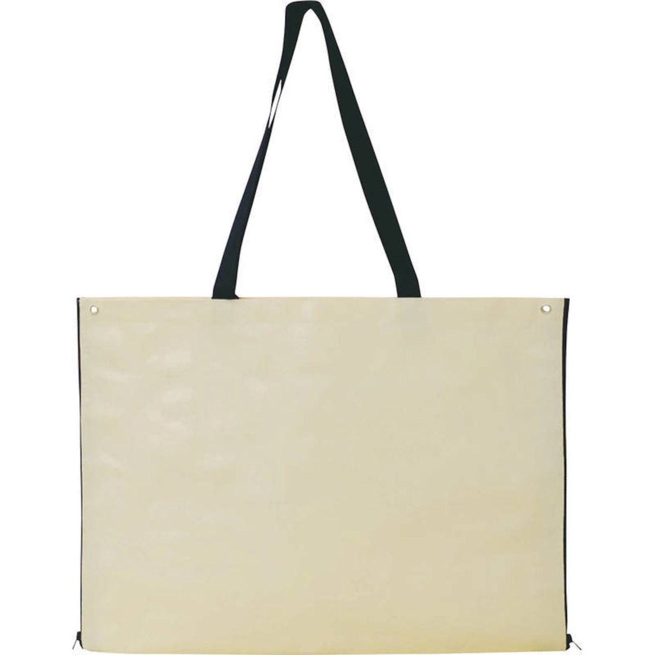 たっぷり収納できる大きなバッグ。両サイドのファスナーを開けば長い物も運べます。一人用レジャーシートとしても使えます。・ハトメ付