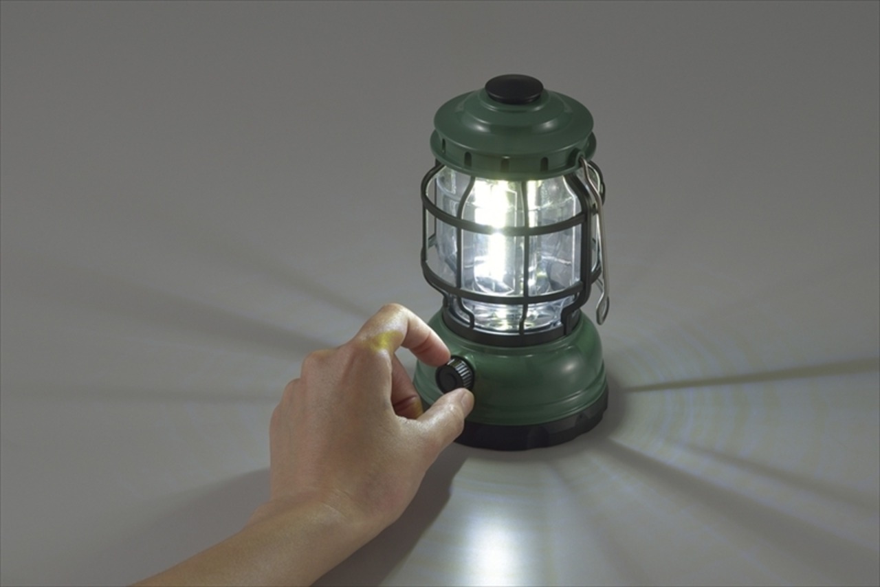 ダイヤルを回して明るさを調節できるヴィンテージ調のランタンライト。・明るさ/200lm、光源/COB3灯