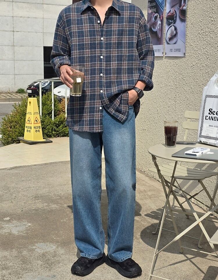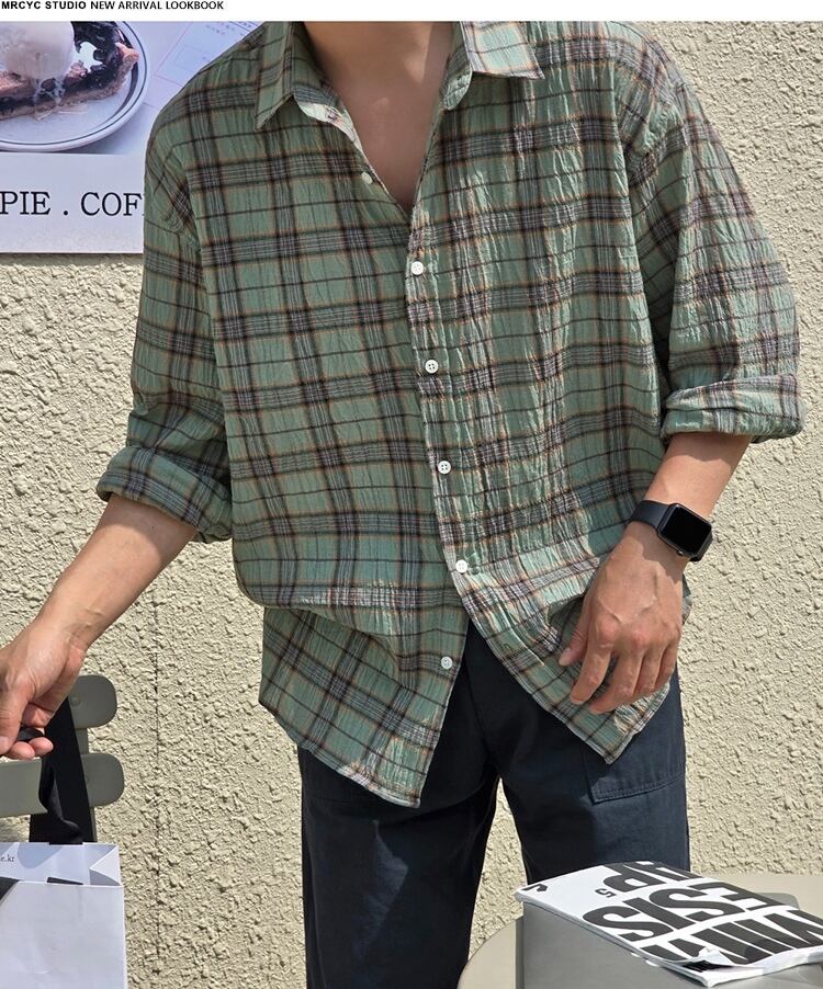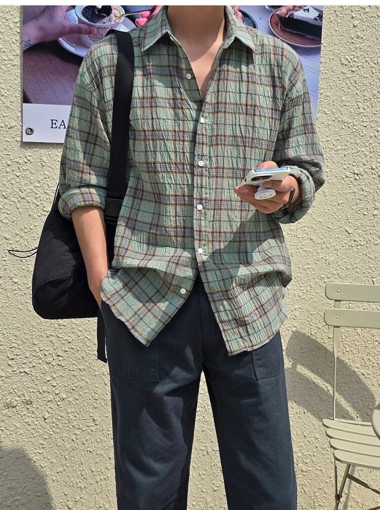 P22470 2025秋新作 トップス 長袖 韓国風 ワイシャツ メンズ 男 チェック レトロ