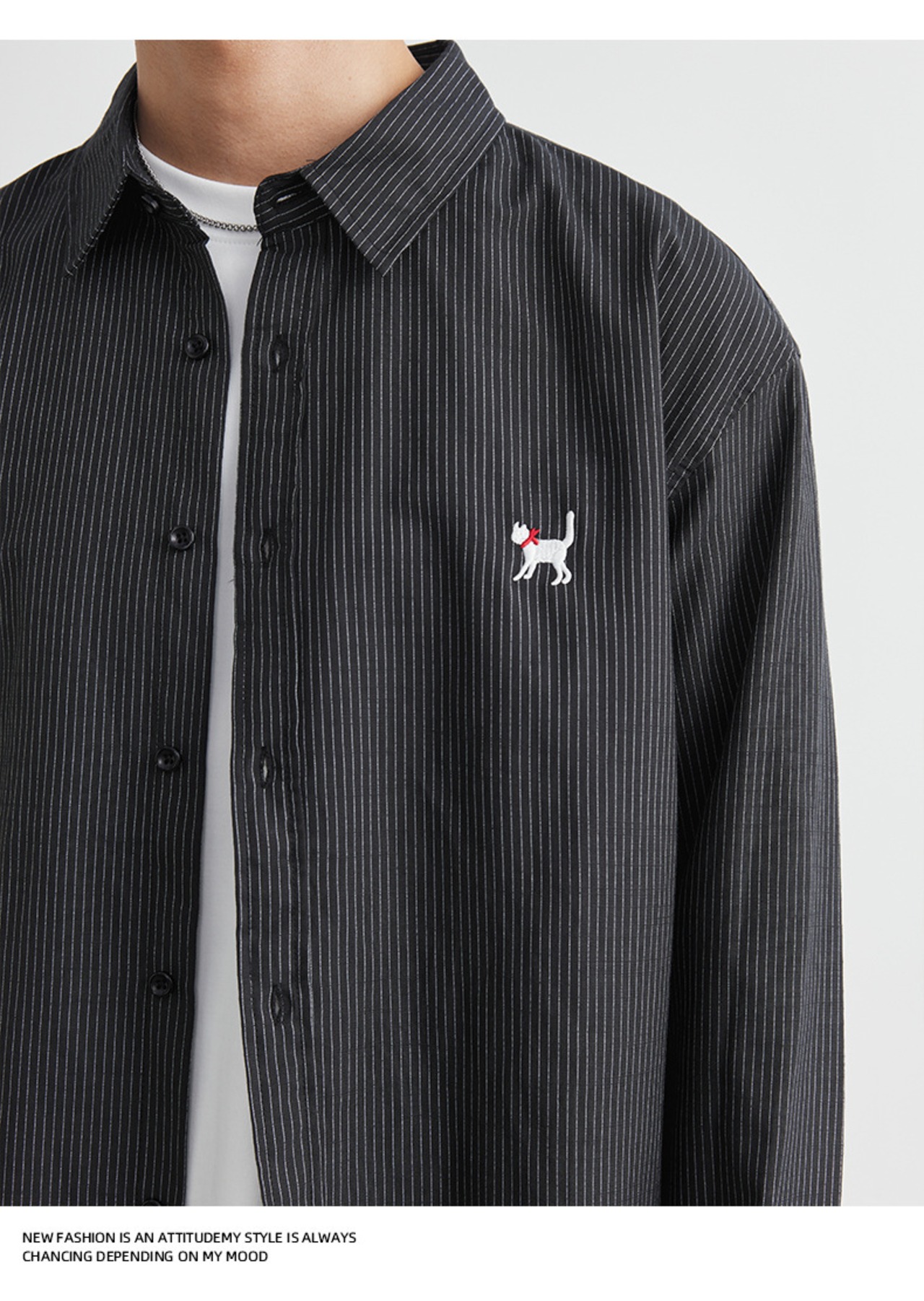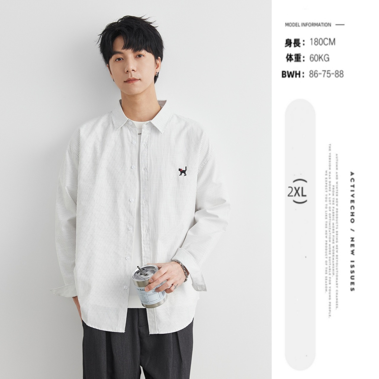 P22557 2025春秋季新作 ワイシャツ 長袖 メンズ カジュアル ストライプ トップス 刺繍