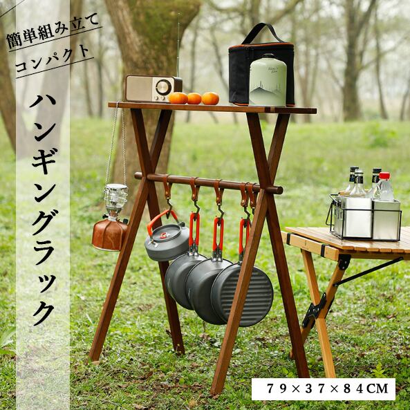 キャンプ ハンギングラック ランタンスタンド アウトドア 折りたたみ 棚 レザーフック コンパクト収納