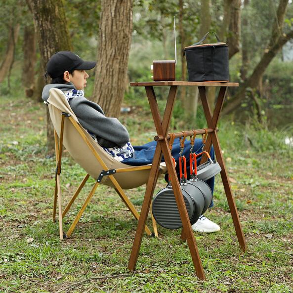 ・ナチュラルなウッドカラーとコンパクトのサイズ感で、キャンプがさらに楽しくなるアイテムです。