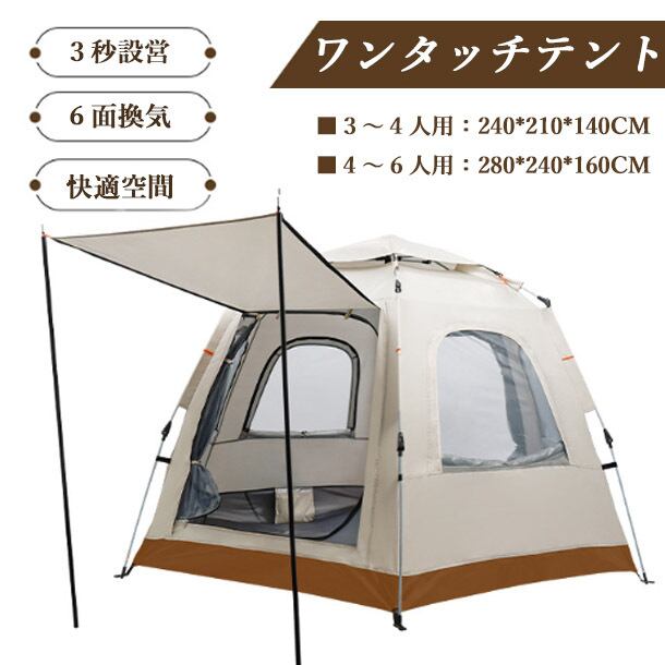 ワンタッチテント 4人6人用 キャンプ 簡単設営 uvカット2重層 大型 アウトドア 6角形 クイック 撥水加工