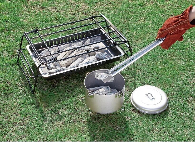 水かけ不要で、自然消化した炭をそのまま保管できるので、再利用も可能です。