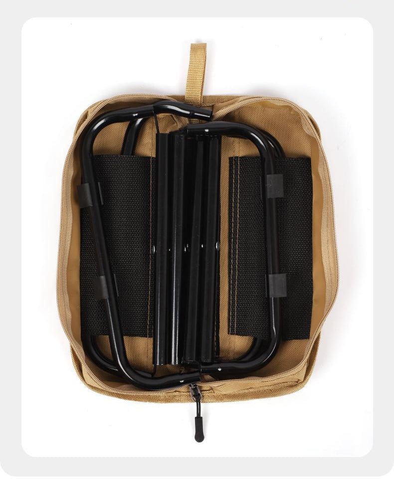 ・この折りたたみ椅子は、座面が収納袋として設計されており、素早く簡単に片付けができる一体型です。