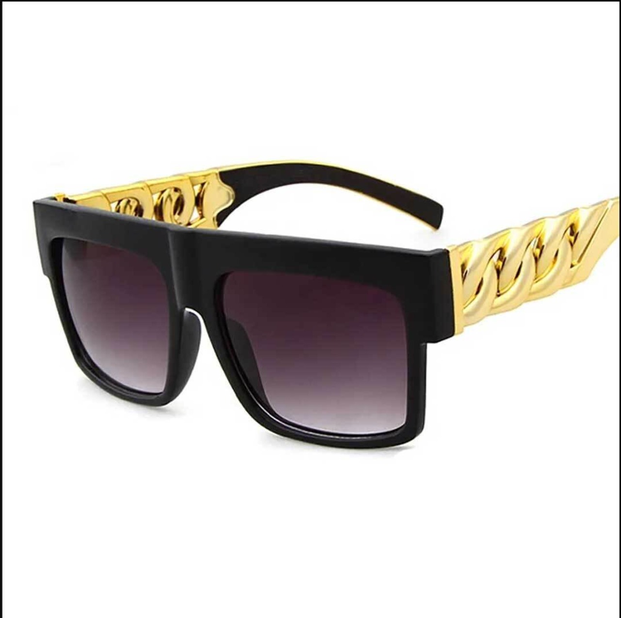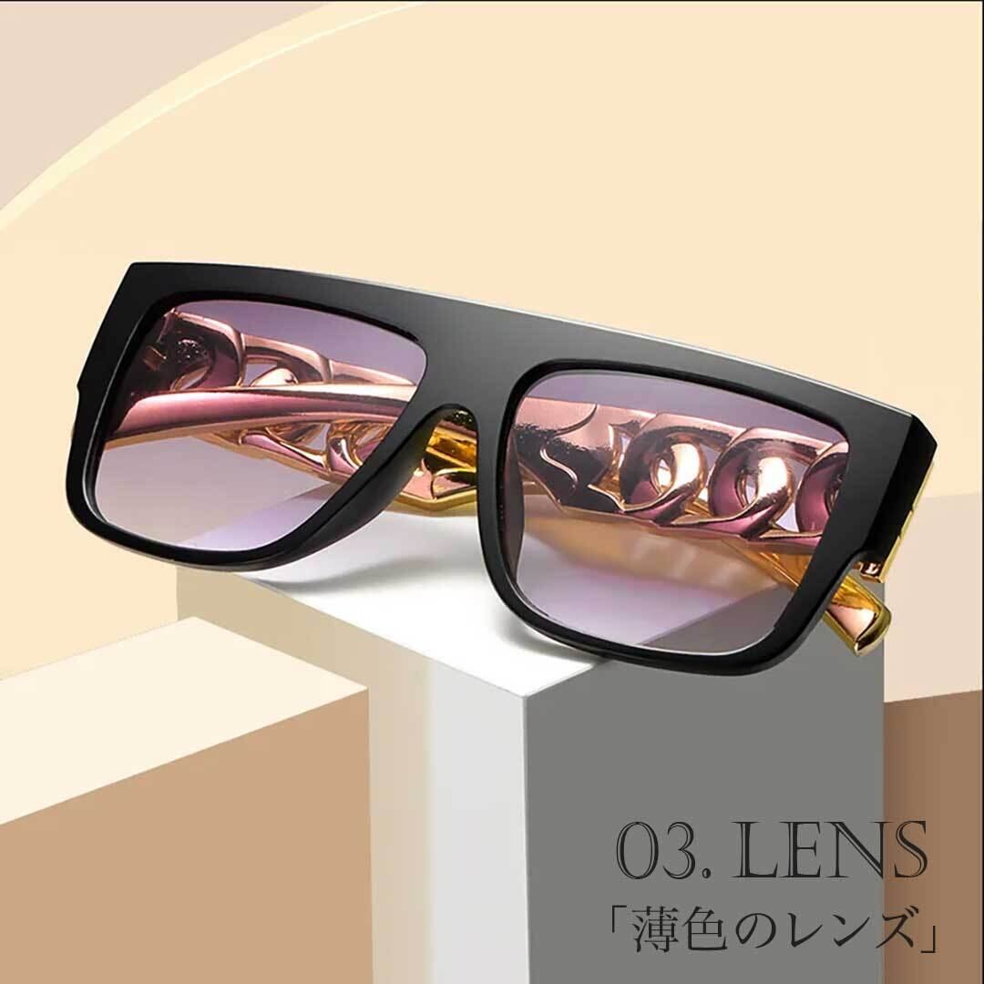 【在庫限り】サングラス ブラックヒップホップ パープルレンズ ゴールドチェインズ メガネ 韓国