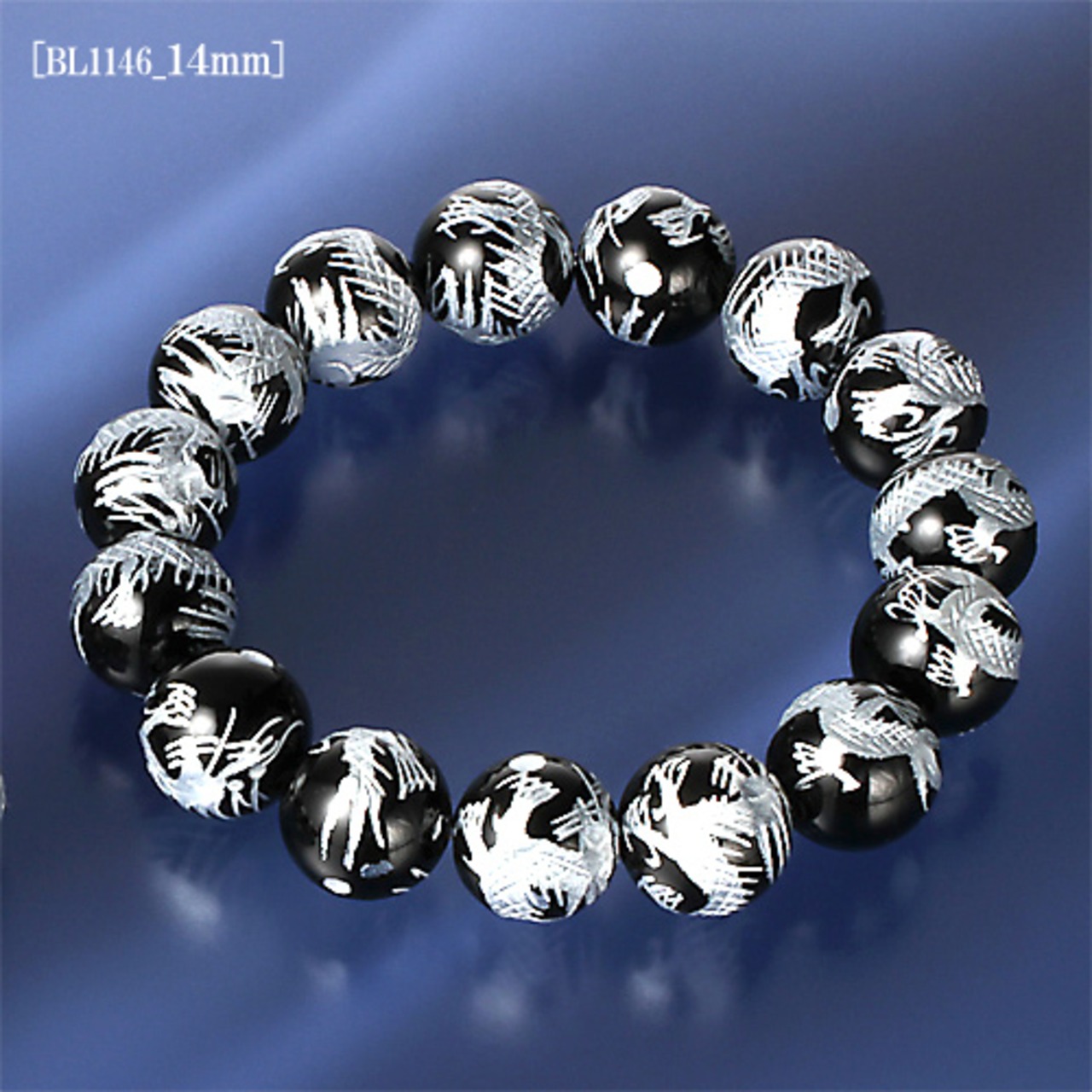 [bl1146_14mm]オニキス15個(14mm珠 龍刻印)[サイズ]約18cm(内径) [重量]約56g[中糸]ポリウレタンゴム[付属品]専用巾着袋、龍のキーホルダー×1個[個装サイズ]縦15.8×横10.0×高さ3.0(cm)/80.0(g)