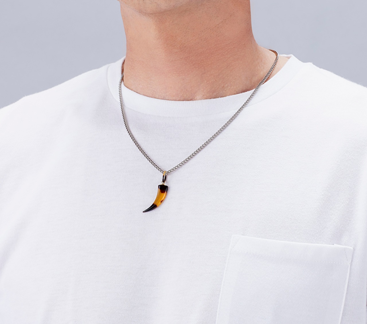 ★男らしい牙をモチーフとした「本べっ甲」と「純チタン磁気ネックレス」が調和した上質な存在感が魅力です。