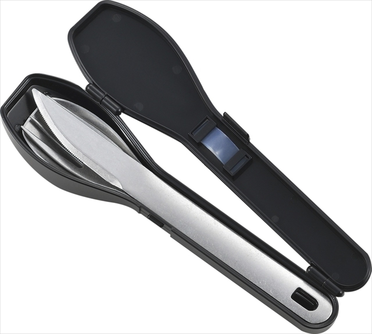 ステンレス製のスプーン・フォーク・ナイフを専用ケースに収納。バラバラにならず、携帯しやすいアウトドア用カトラリーセット。