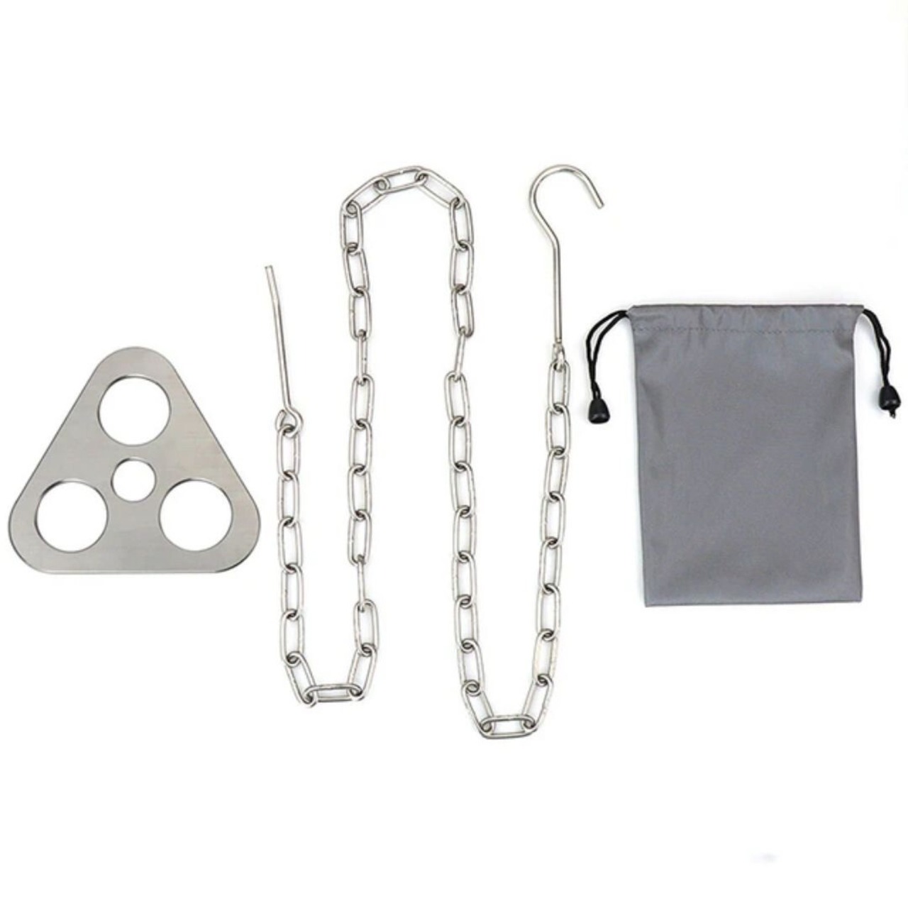 チェーンの先端にあるフックに鍋、飯盒などを吊るせます。焚き火に使うのはもちろん、ランタンやバッグ、小物の吊り下げとしても使えます。キャンプはもちろんの事バイクツーリング、沢登り等にも軽量、コンパクト収納で最適です。ステンレス製なので、耐久性や見た目が良いだけではなく、頑丈に出来ています。手入れがラクラク