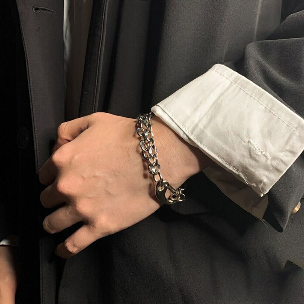 ブレスレット 太め クリップ 2連 チェーン 17cm