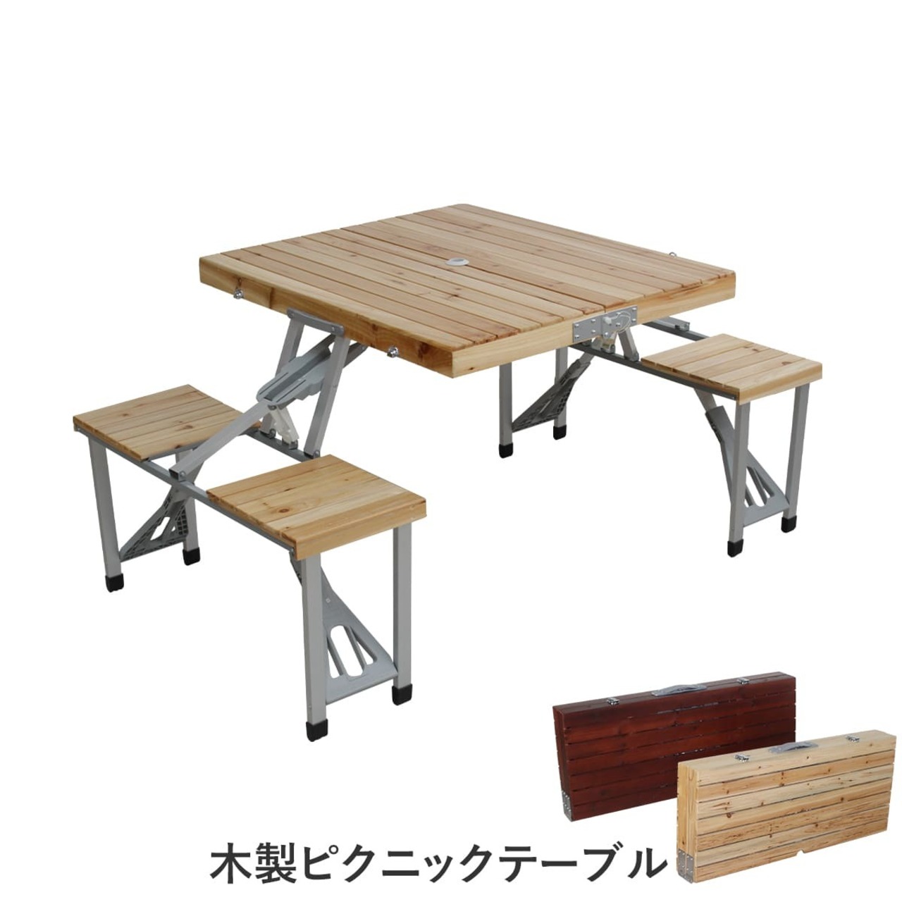 テーブルとチェアが一体となったデザインで、使い勝手とデザイン性を両立させた木製ピクニックテーブル。