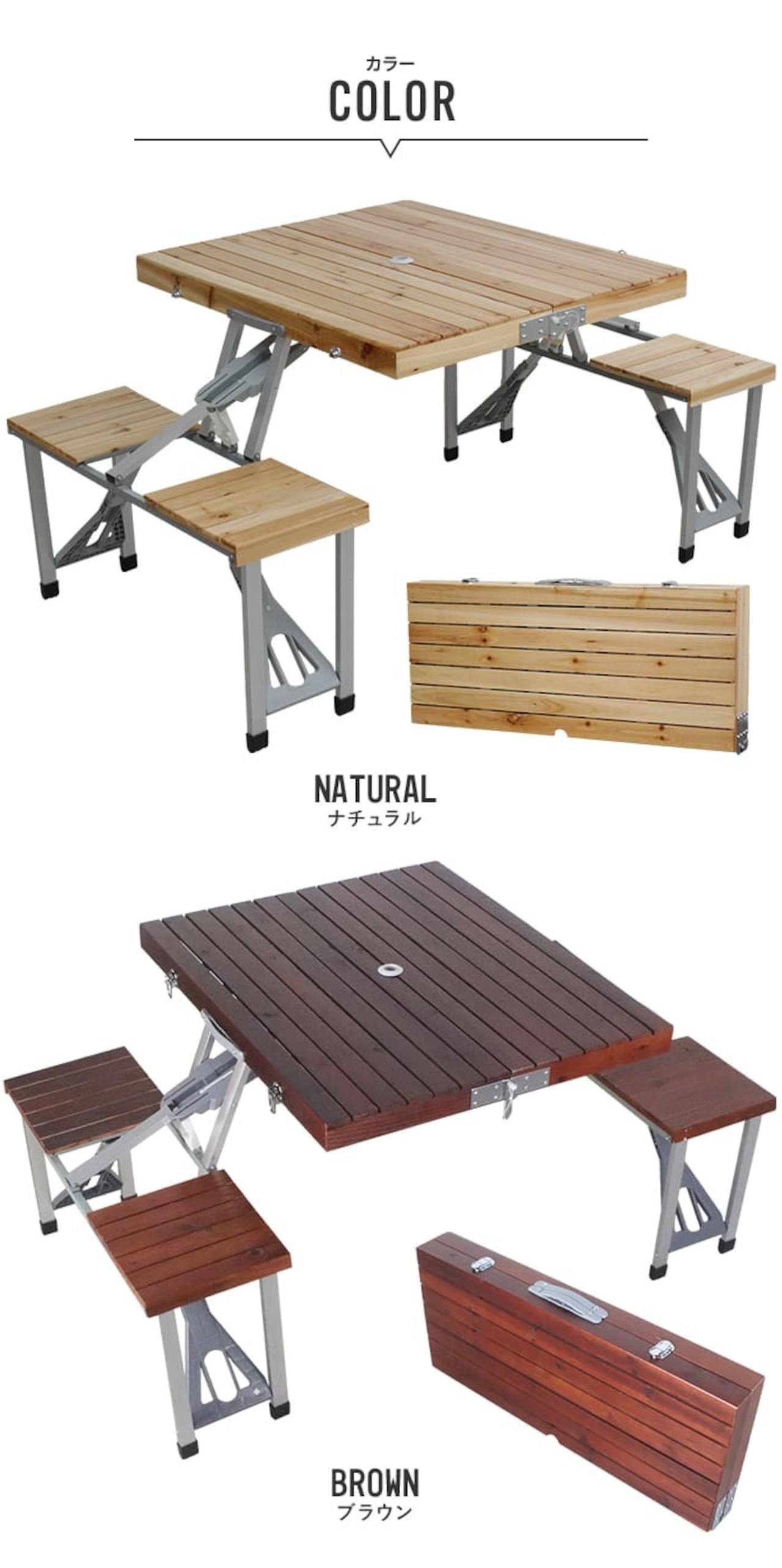 利用シーンや好みに合わせて選べる2つのカラー、ナチュラル色とブラウン色は、どちらもアウトドアに映える自然な色合いです。