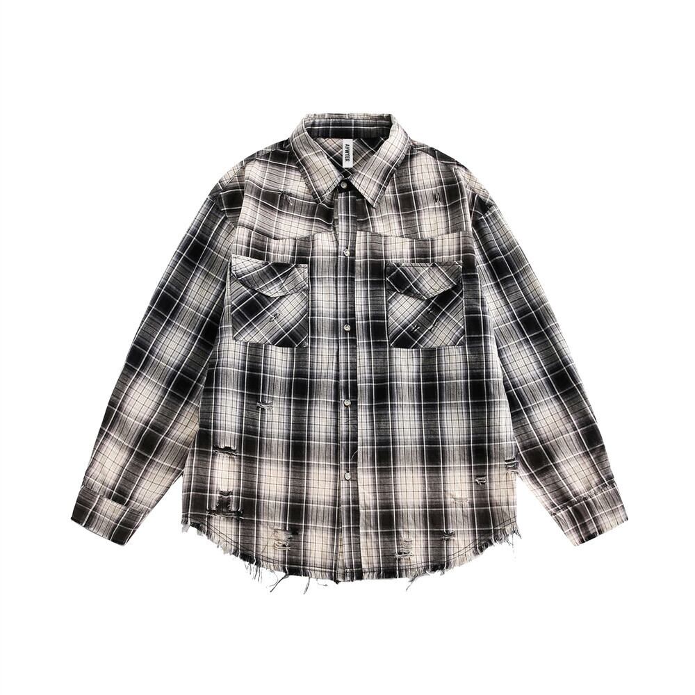 メンズ ダメージ加工 長袖 シャツ 男女兼用 ストリート系 サマー アウター 春秋 2025新作