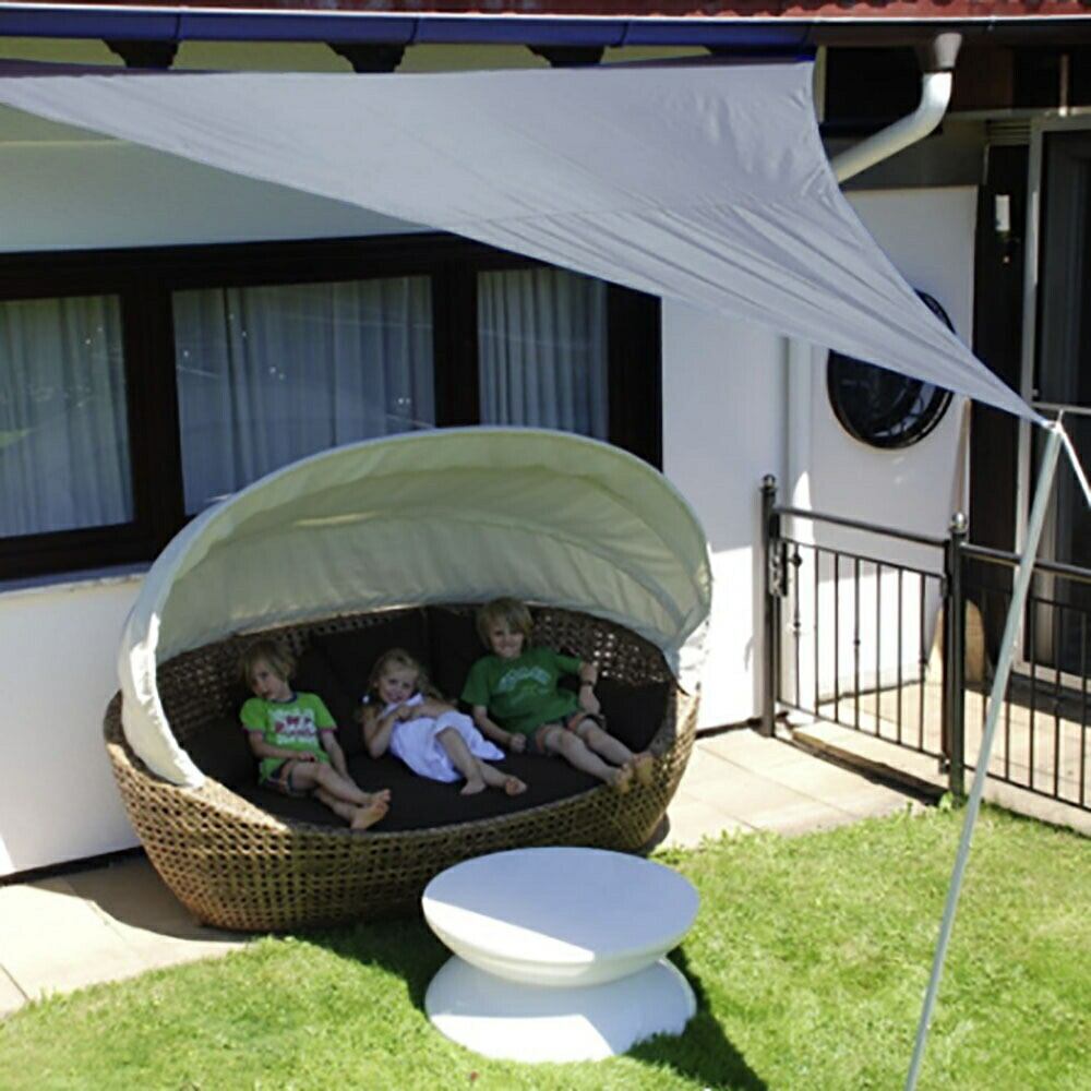 色合いが美しいグレーの三角形デザインのサンシェード【在庫限り】アウトドア 日よけシェード オーニ。これ一つで、日差しからしっかりと守る快適なアウトドア空間を作ります! 軽量かつ持ち運びしやすい設計で、ピクニックやキャンプなど、様々なシーンで活躍します。また、耐久性に優れた素材を使用しているため、長時間の日差しでも安心です。