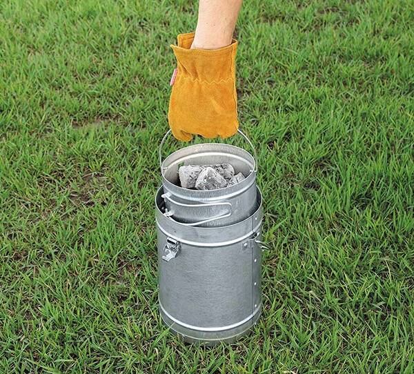 残った木炭を火消しつぼに入れてフタをするだけで酸素を遮断して、自然消火ができます。